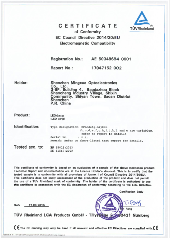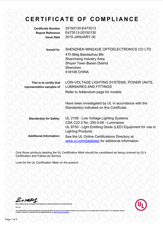 目前为止,我们通过了ISO/TF 1 6 9 4 9和UL、CE、ROHS、FCC、ETL认证。明学赢得了客户的信任,产品广泛分布于欧洲、北美和亚太地区,与宜家、哈马、沃尔玛、比亚迪、小米。